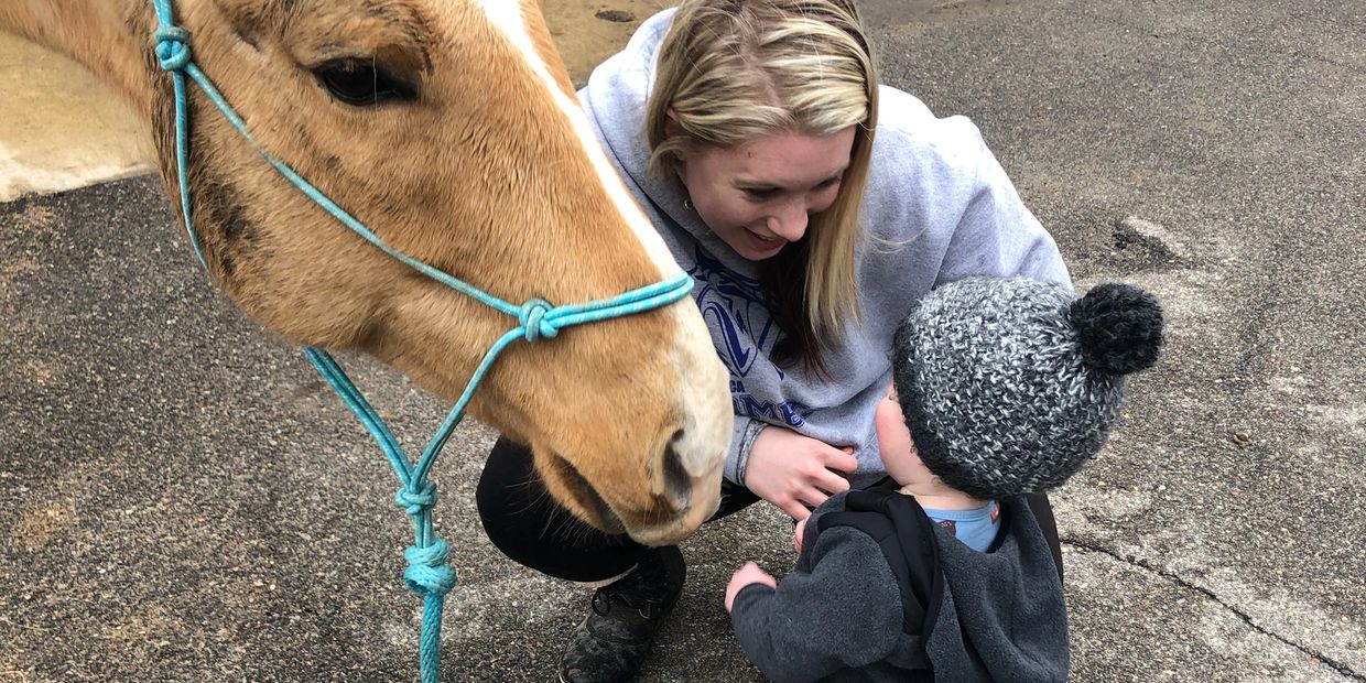 "Hello! I’m Katie!" I reside on a hobby farm in Webster with my husband and two kiddos. Before I had children, I was a social worker by trade but most recently have been promoted to stay at home Mom. On our farm we currently have six horses, three goats, five cats, two dogs, and endless amounts of chickens. I've always been around and have had animals my whole life. From a very young age I started riding horses and showing animals in 4H. This grew into showing and competing on my horses into my adulthood.